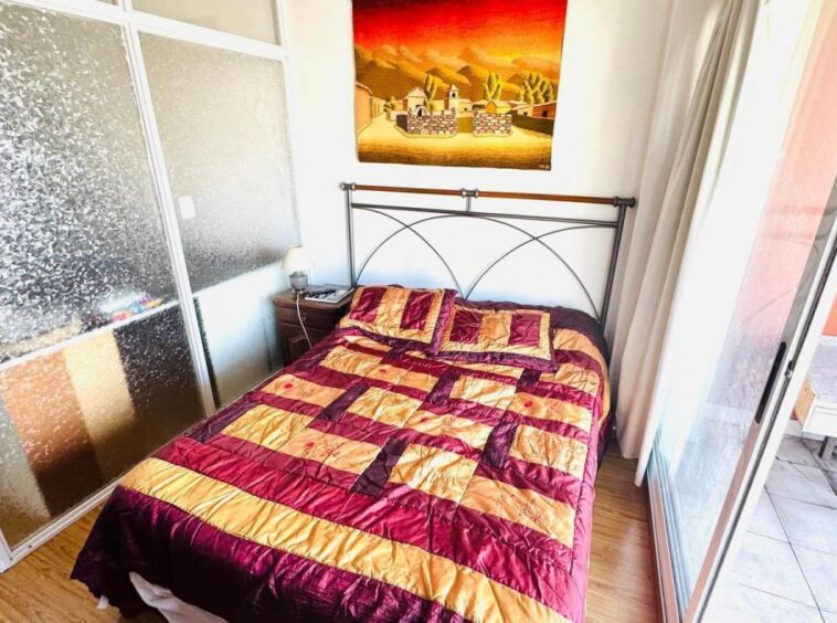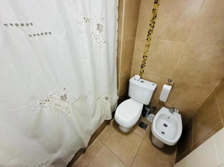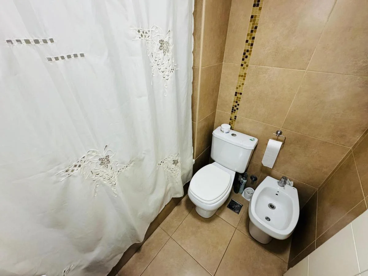 A la izquierda se encuentra el baño completo con grifería, sanitarios y revestimientos de calidad.