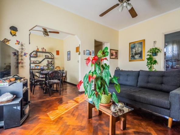 La distribución es versátil y funcional: dos cómodos dormitorios con excelente ventilación cruzada, un espacio de estar flexible que puede convertirse en tercer dormitorio o atelier, y un baño completo con ventilación natural. Los pisos originales de parquet de Eslavonia añaden carácter y calidez, evocando historias que se sienten en cada paso.