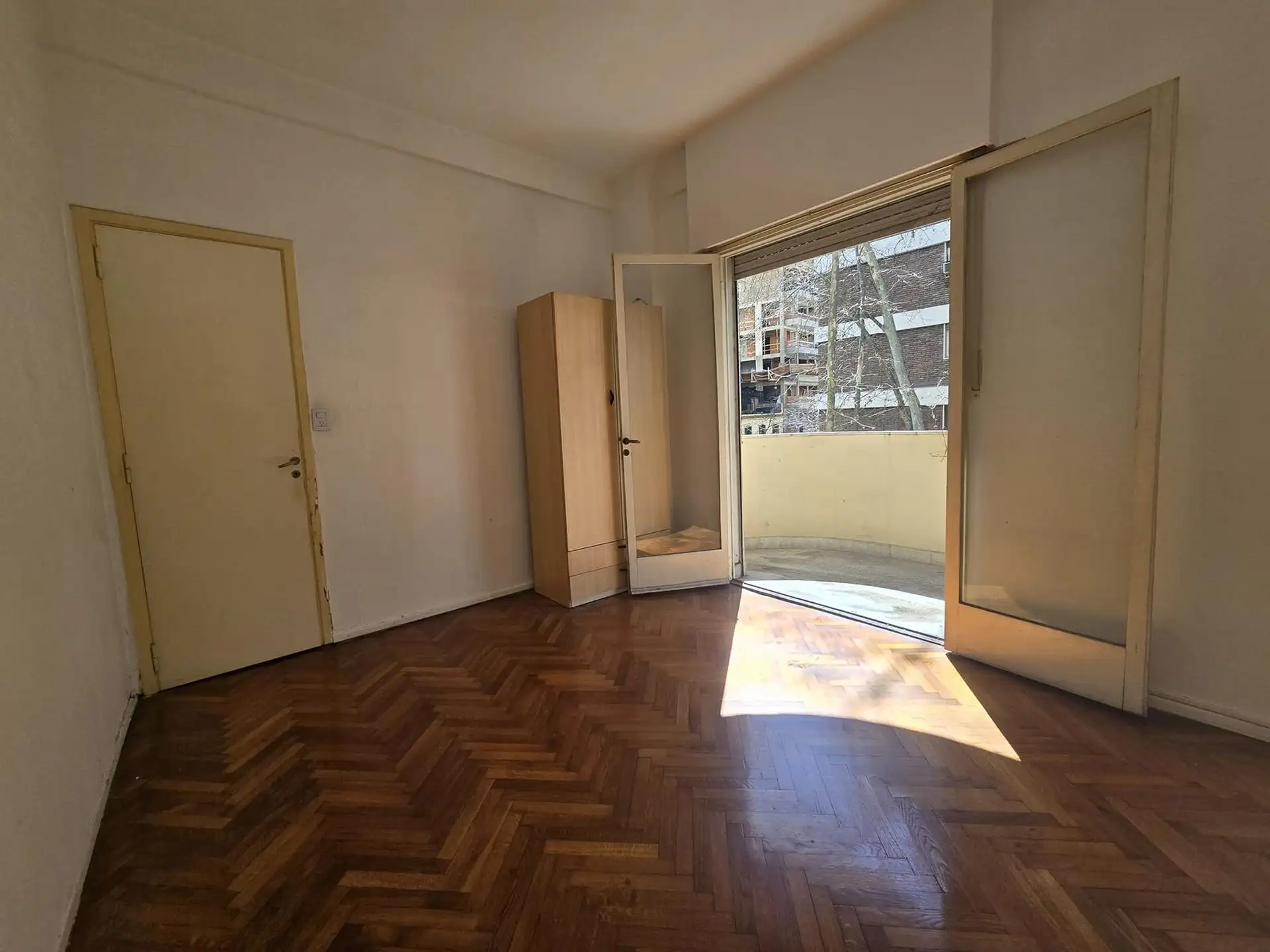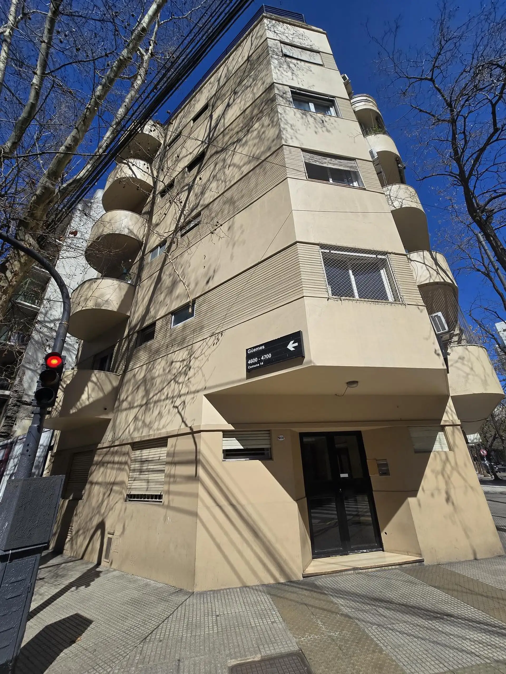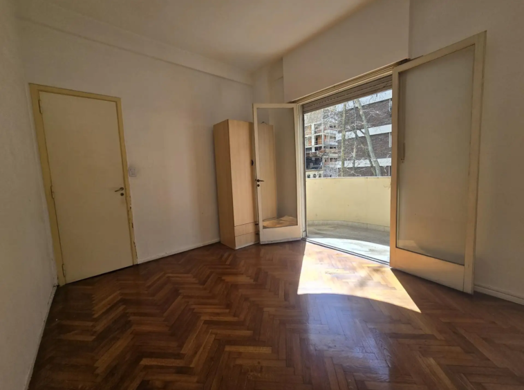 Habitación Principal: Con balcón al frente de la calle Guemes, ofreciendo vistas despejadas y mucha luz natural. Al estar en una esquina, el departamento recibe luz durante todo el día.