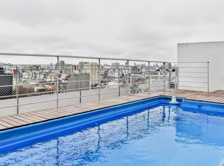 En el último piso del edificio se encuentra el SUM, con su espacio exclusivo de mesa, heladera y televisión. En el mismo piso encontramos la pileta y solárium, además de un segundo espacio con parrilla.