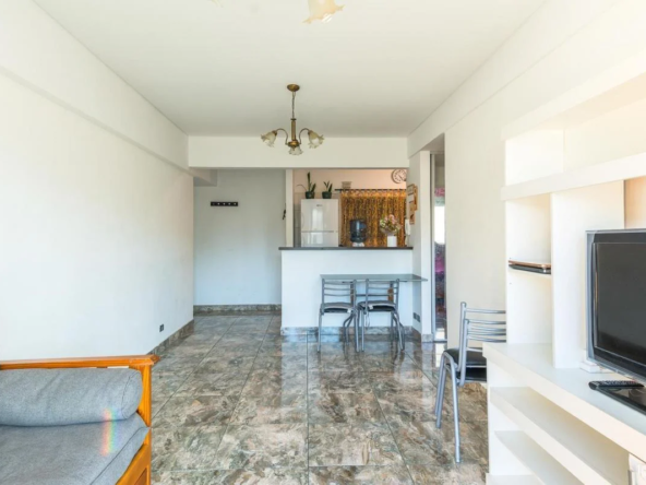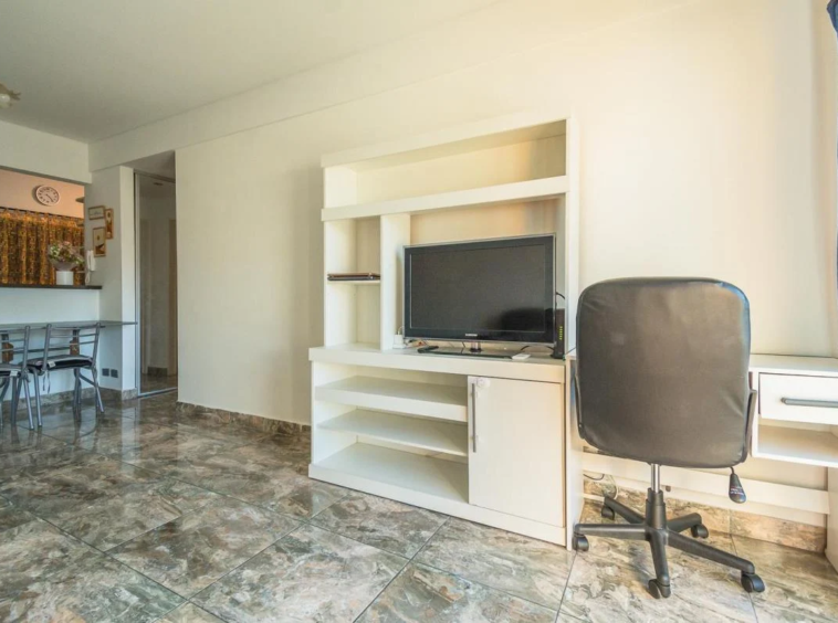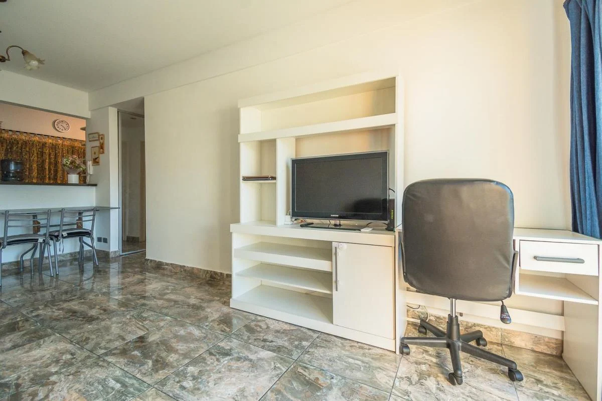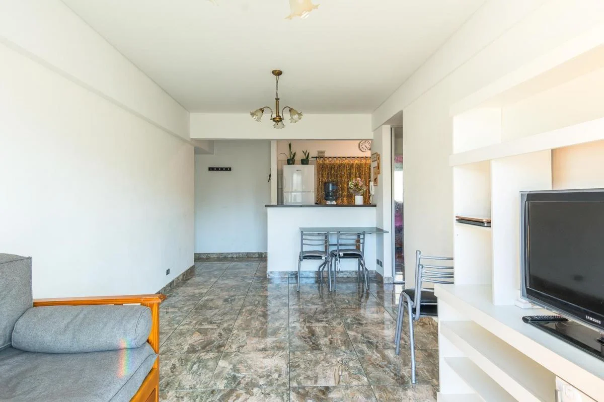 Este impecable dos ambientes es ideal para aquellos que buscan un departamento de muy buen diseño, pisos de cerámica, cocina integrada semi independiente, con barra que une a la misma con el living comedor invita a las personas que lo habitan a poder disfrutar de un ambiente cálido y relajado, a compartir momento únicos mientras cocinas.