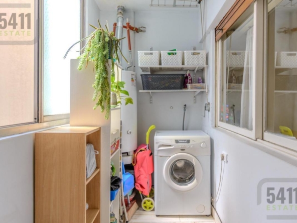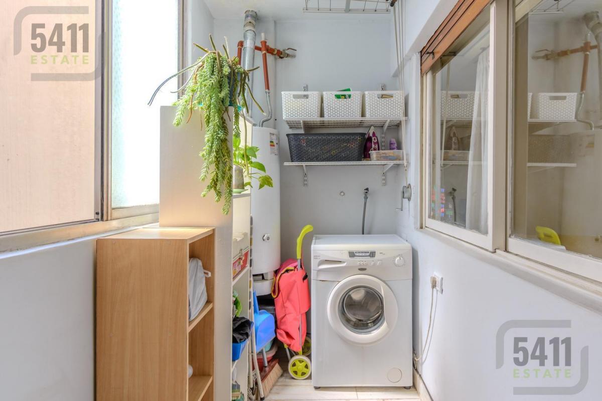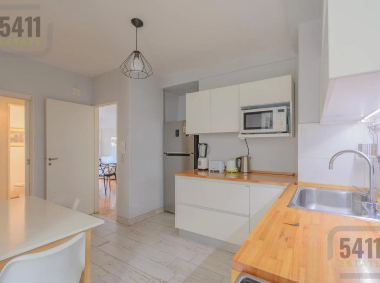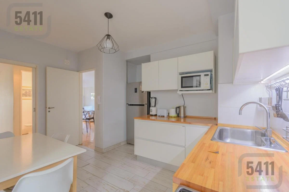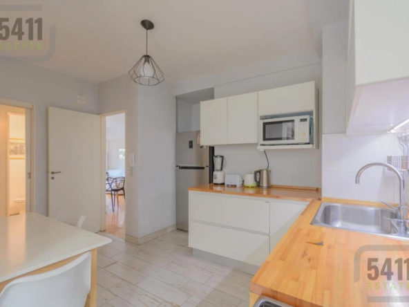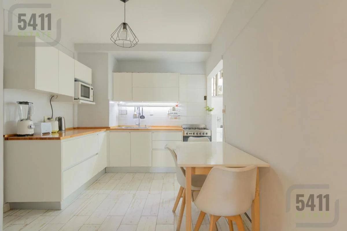 La cocina independiente, completamente renovada, cuenta con muebles modernos hechos a medida y un lavadero independiente con ventilación natural.