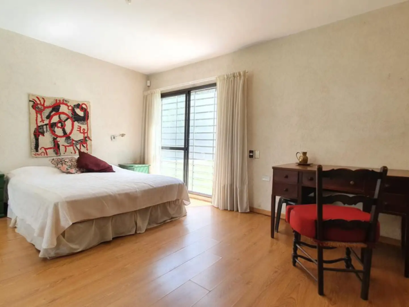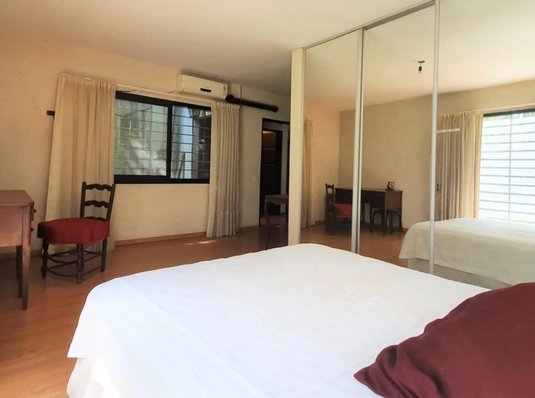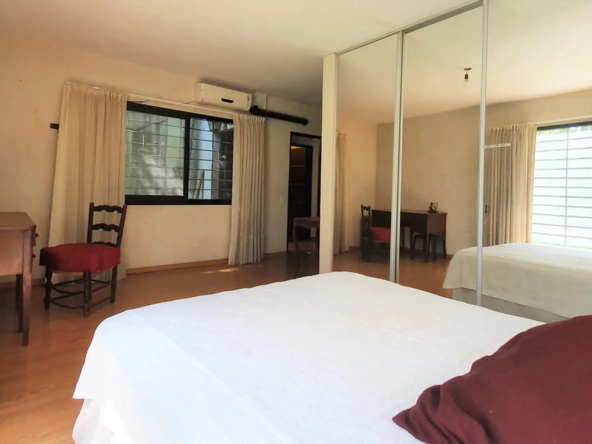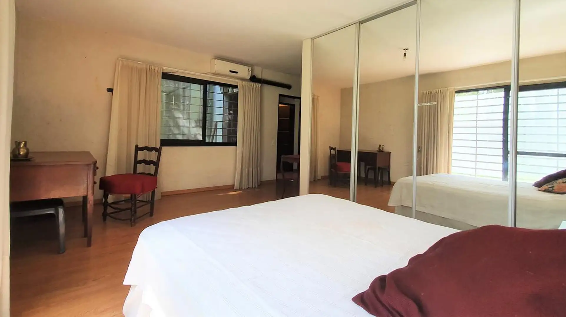 Dormitorio principal con placard muy amplio espejado y baño en suite con bañera. Ventilación natural.