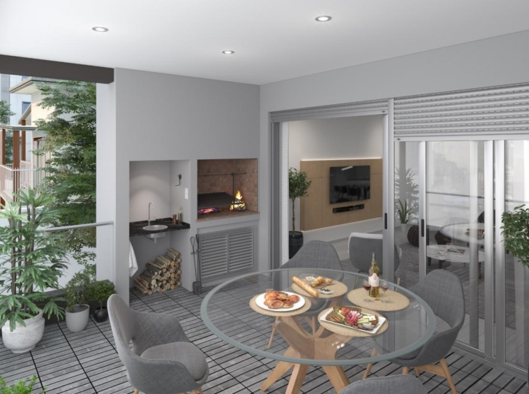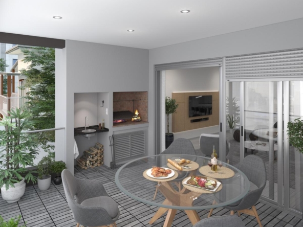 La terraza, revestida en porcelanato simil deck y equipada con parrilla de obra, ofrece un espacio ideal para reuniones al aire libre, ampliando el confort del área social. En el sector íntimo se desarrollan dos dormitorios, uno de ellos en suite con vestidor y baño completo. Ambos poseen amplios placares con interiores terminados y excelente ventilación. El departamento se completa con toilette de recepción, segundo baño completo y lavadero independiente.